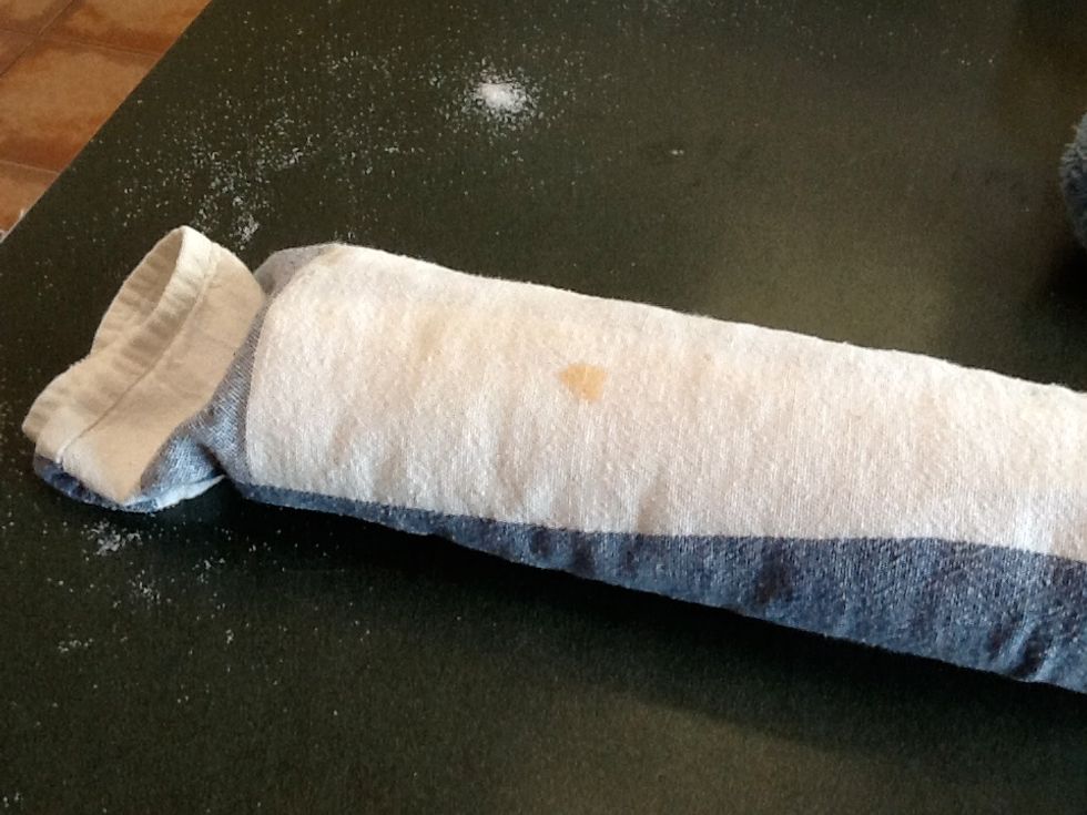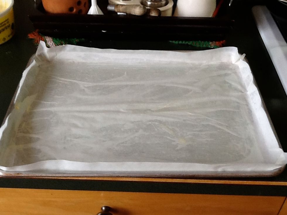 turn the tray on kitchen towel withe granulate sugar under take off the parchment paper out