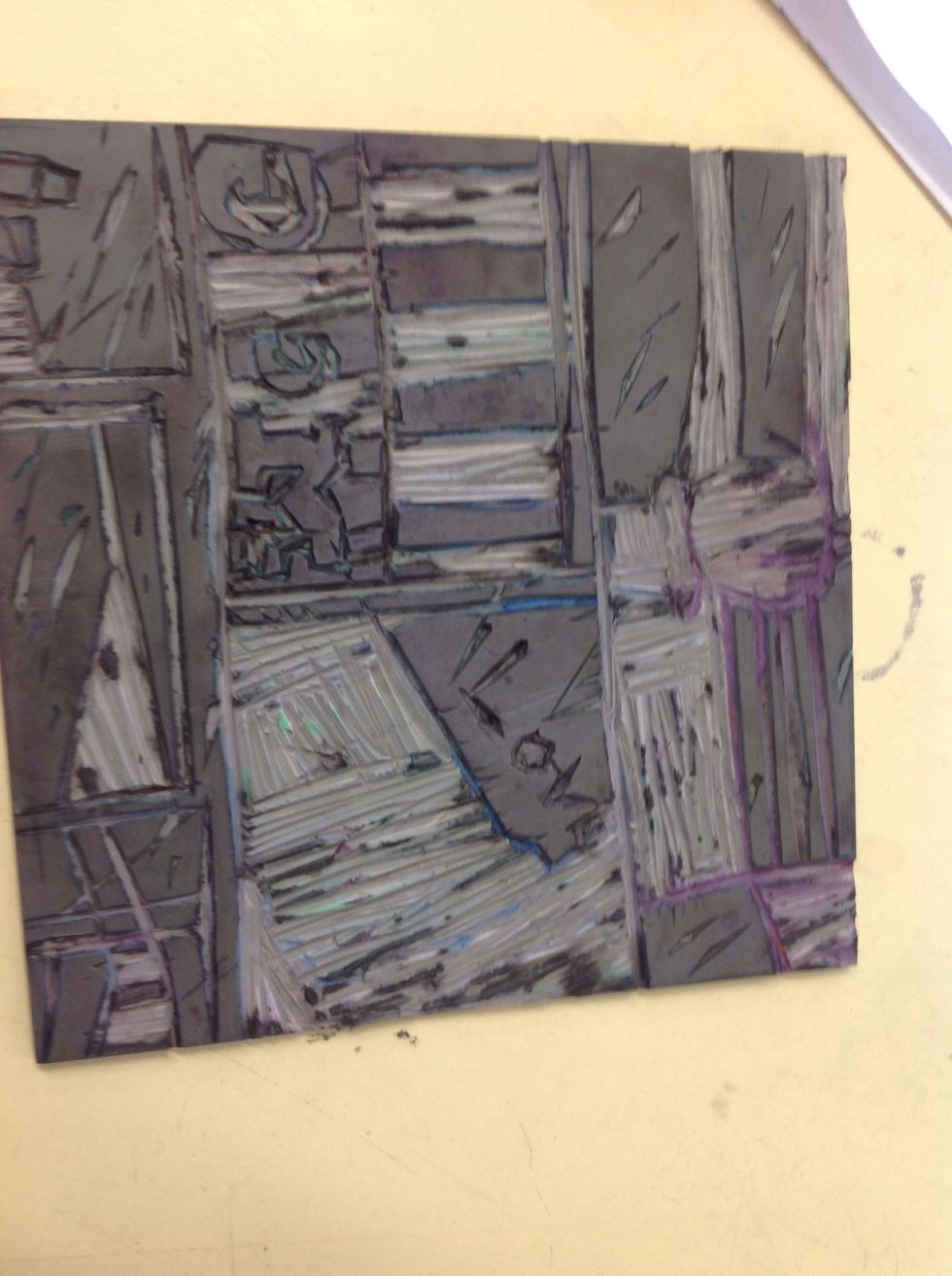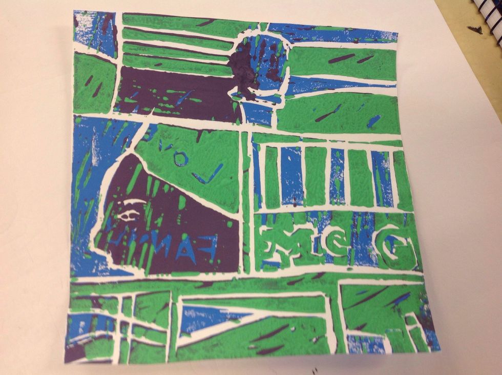 Now place the Lino on the piece of paper and turn the paper over and rub the paper so the ink sticks to the paper