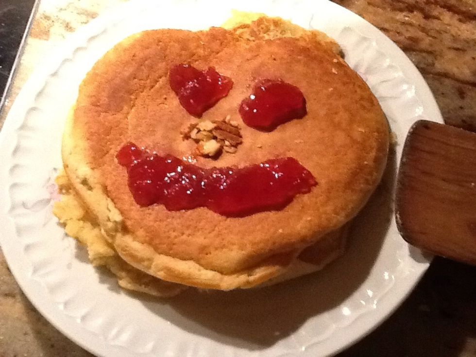 When it has risen a little bit you flip it around. (Mine doesn't look good because I didn't get the whole pancake to flip around)