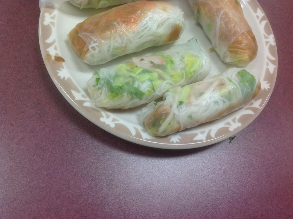 After you fill up your roll with the things you want, then fold the sides of the rice paper.