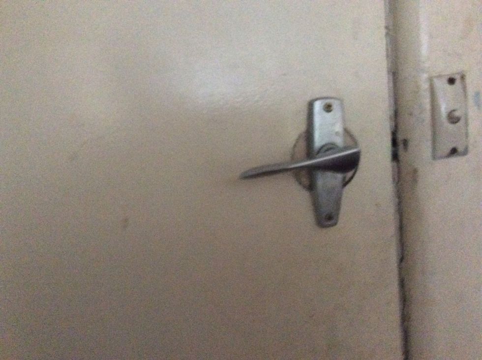 Push the door open while twisting or pulling on the handle. Don't push the door too hard or it will slam.