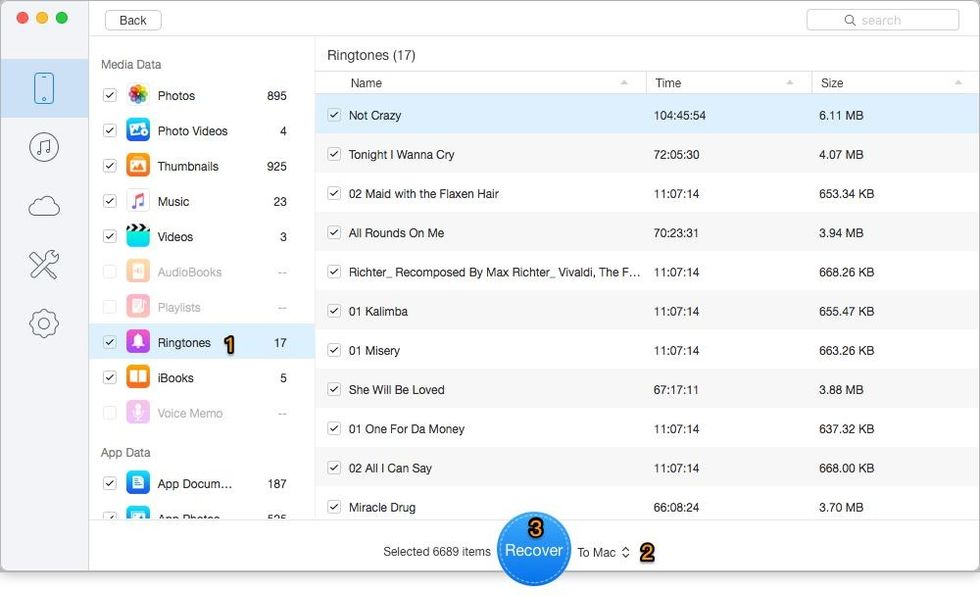 Step 2. All your iPhone 8 files including the deleted ones will show up after scanning. Choose the lost files you want > set To Device directly or To Mac/PC > click Recover button to start.