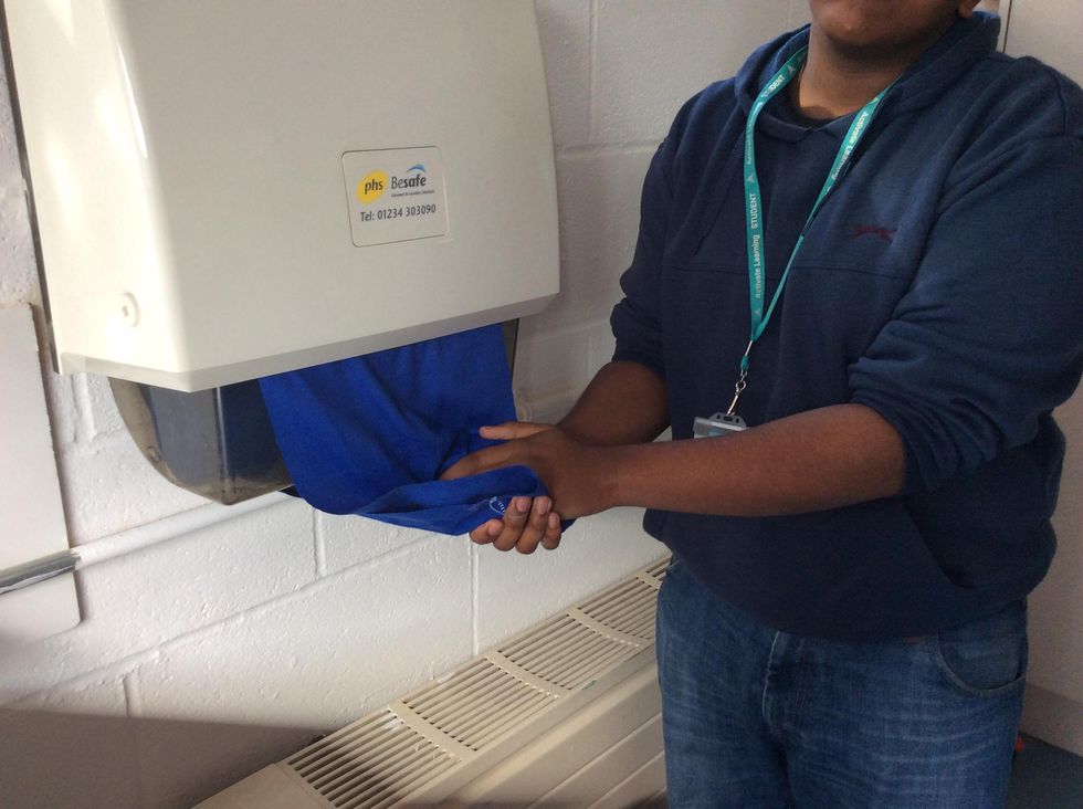 Wet your handsUse soapWash between fingersWash back of handsWash base of thumbWash fingernailsWash back of fingersRinseDry your hands