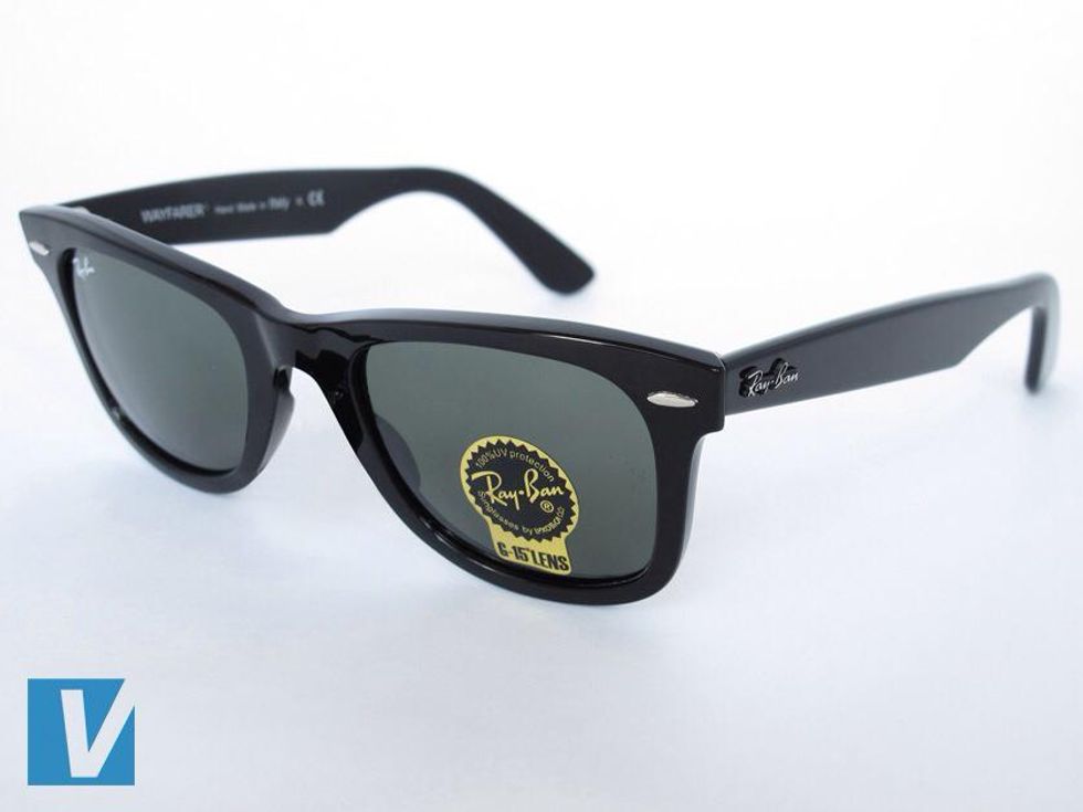 New Ray-Ban Wayfarer sunglasses are packaged in a branded retail box. Check the colour & image quality of the logo carefully. Be aware that genuine packaging can accompany counterfeit sunglasses.