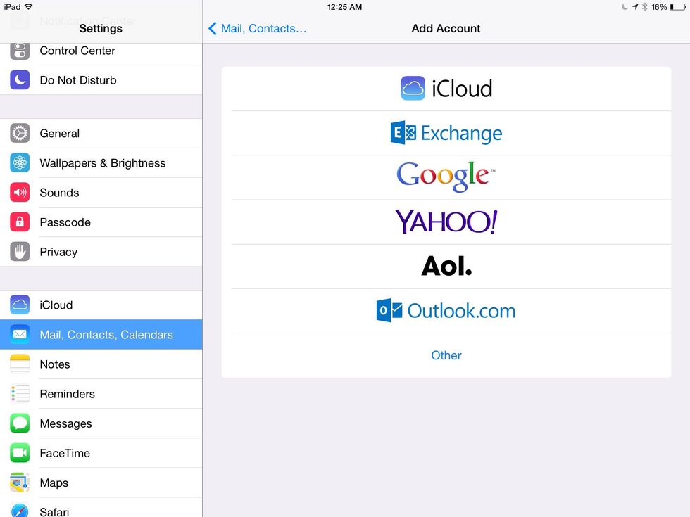 Go to the settings and scroll down to "mail, contacts, and calendars".