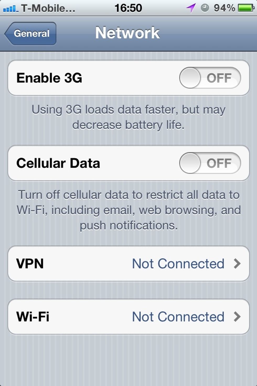 Turn off Enable 3G and Cellular Data.