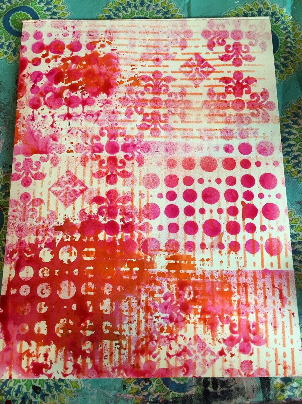 Using Art Anthology's Patience Colorations Spray with Art Anthology's Rosette stencil add some overlapping sprays.
