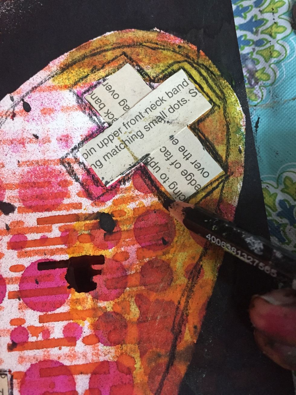 I added some Art Anthology's Velvet in Fiesta to the its cap and stamped on to page in selective areas.