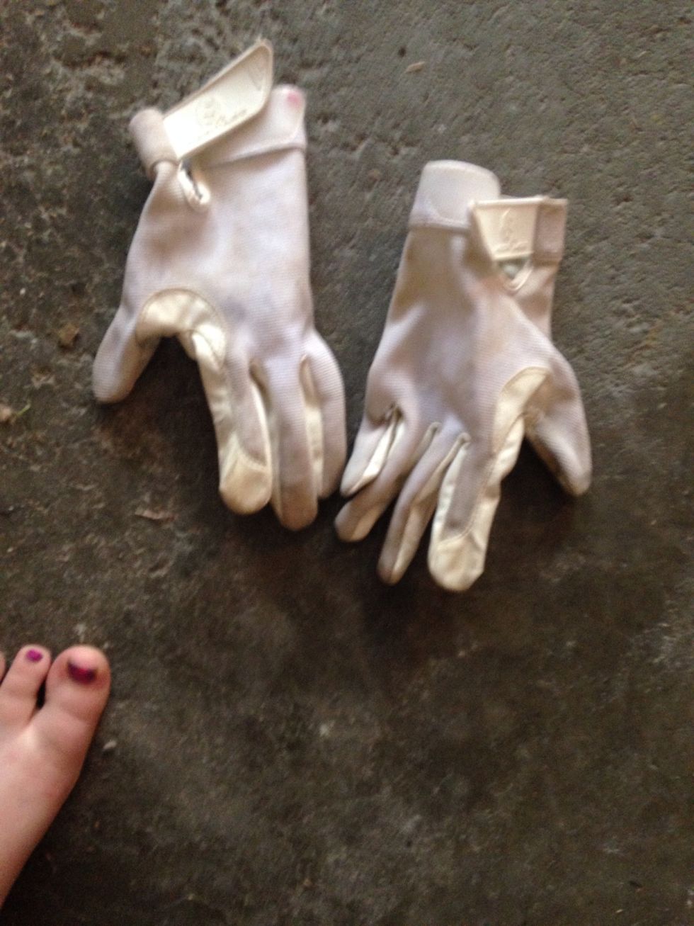 Then your gloves mine are really dirty from all the riding and everything but you need show gloves which are black and any type for just lessons or free riding! Then go Enjoy your ride:)