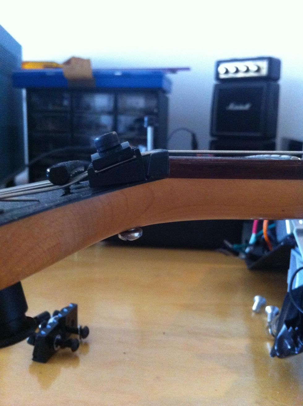 Also, depending on the quality of the guitar prior to modification you may want to lubricate the strings where they come in contact with the original nut, Eddie-style.