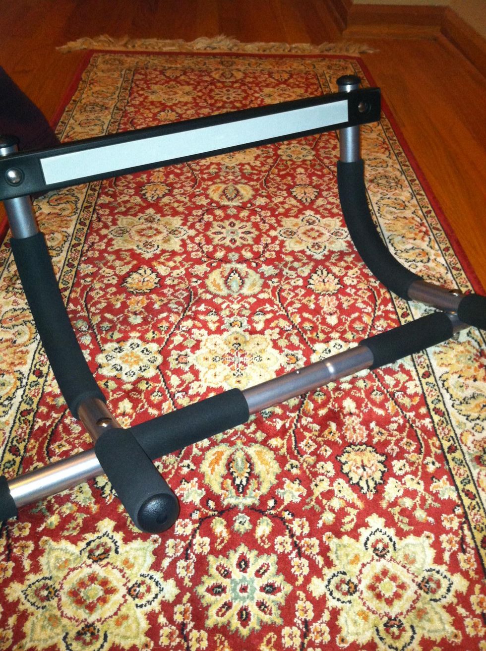 Here's a standard pullup bar.Hold it, and bring it up to the top of the doorway.Hang as shown, with the black rubber pad side on top of the lip of the doorway.Be sure the curve goes to the other side so downward force doesn't rip it off.Have fun getting ripped!