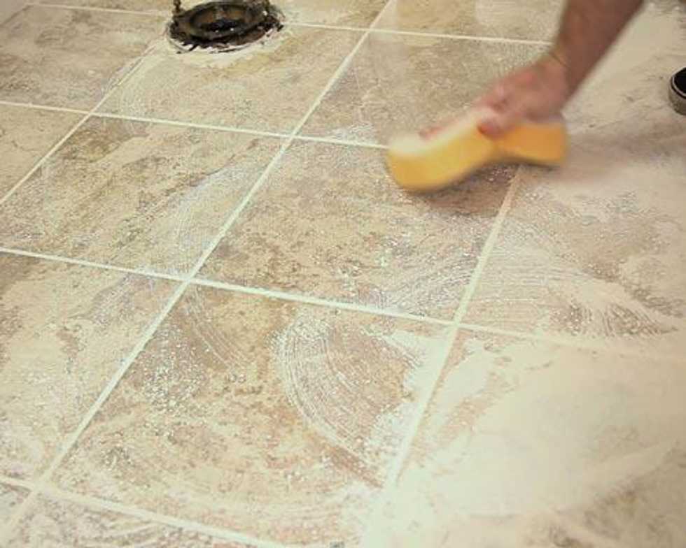 Clean off the grout with a wrung out sponge. Work in a circular motion to avoid pulling out the grout. Let the grout cure for 24 hours before thoroughly cleaning and spraying grout sealer.