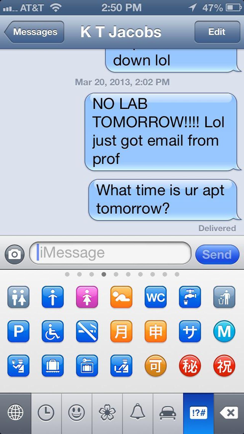 To use the Emoji keyboard in a text message, hit the little earth lookin thing next to the microphone.