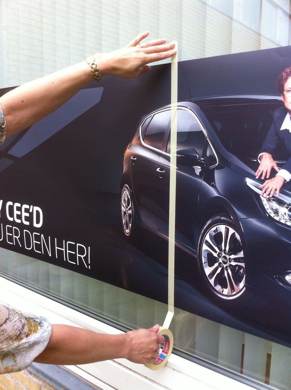 Sørg for at vinduet er rent og klar til montering. Placer Folien på vinduet med små stykket Malertape i hvert hjørne.