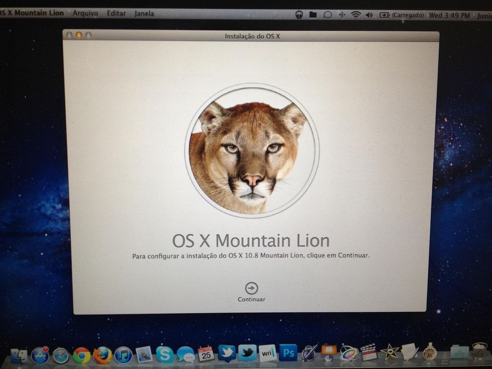 Luego de comprar y bajar Mountain Lion de la App Store, esta es la imagen que aparecerá, listo para iniciar la instalación. Asegure el toma corrientes y conexión a Internet en su Mac. Café en mano =)