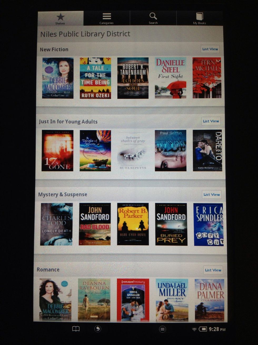 The ebooks you download show up under the "My Books" tab. Click on a cover image to begin reading.