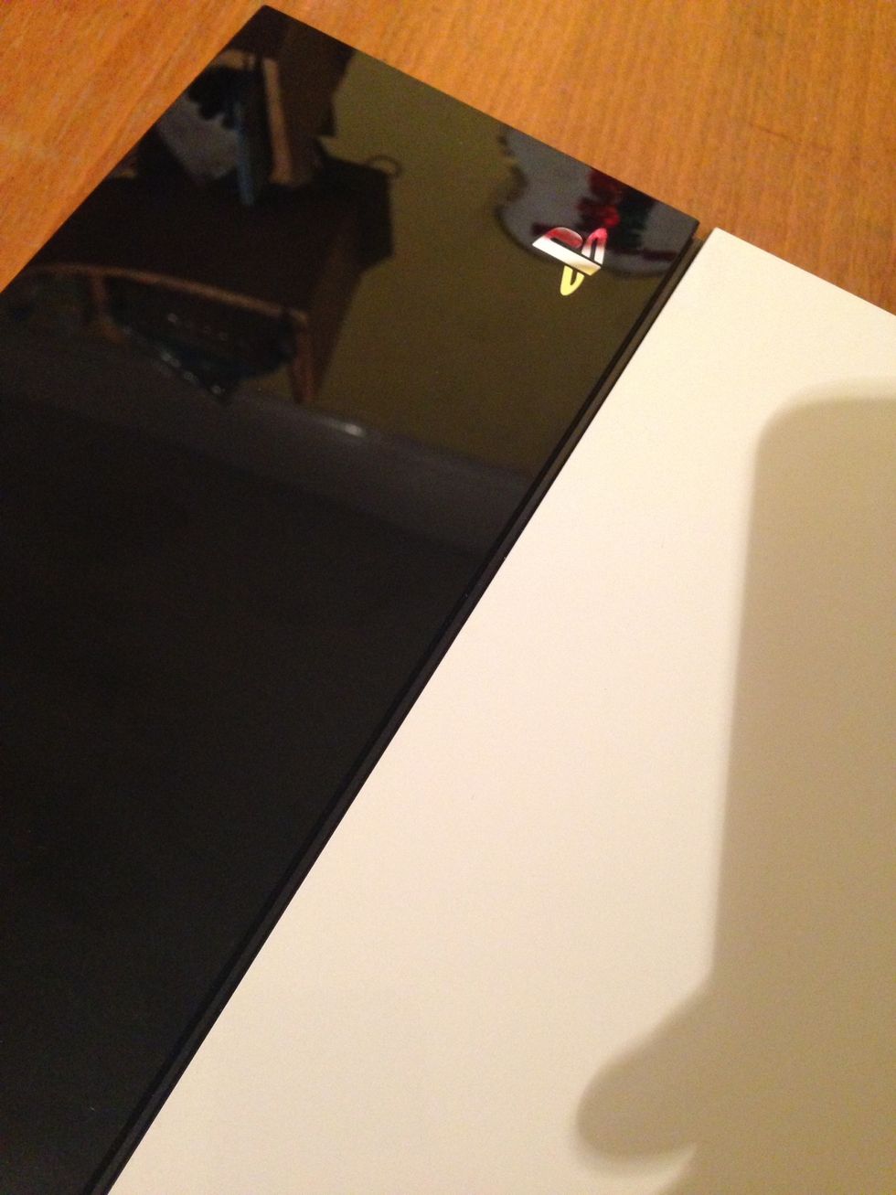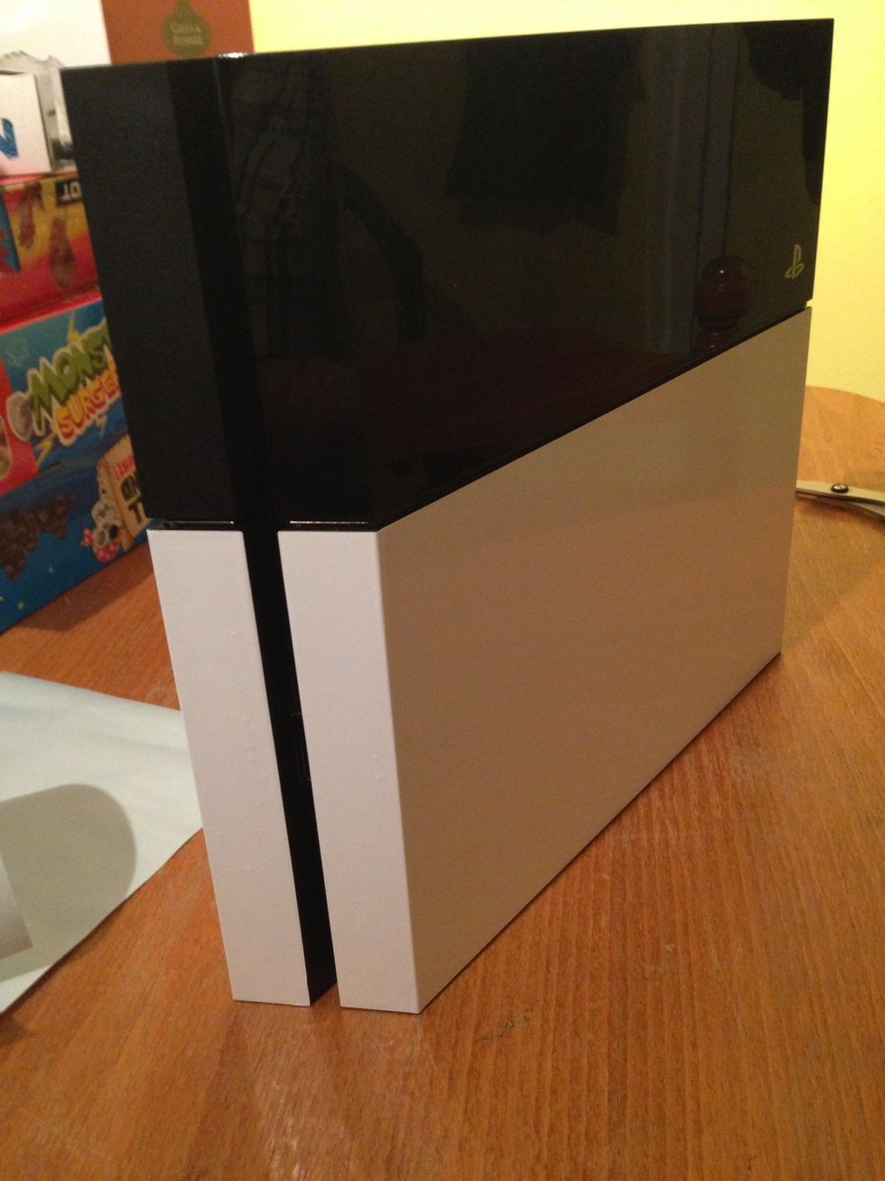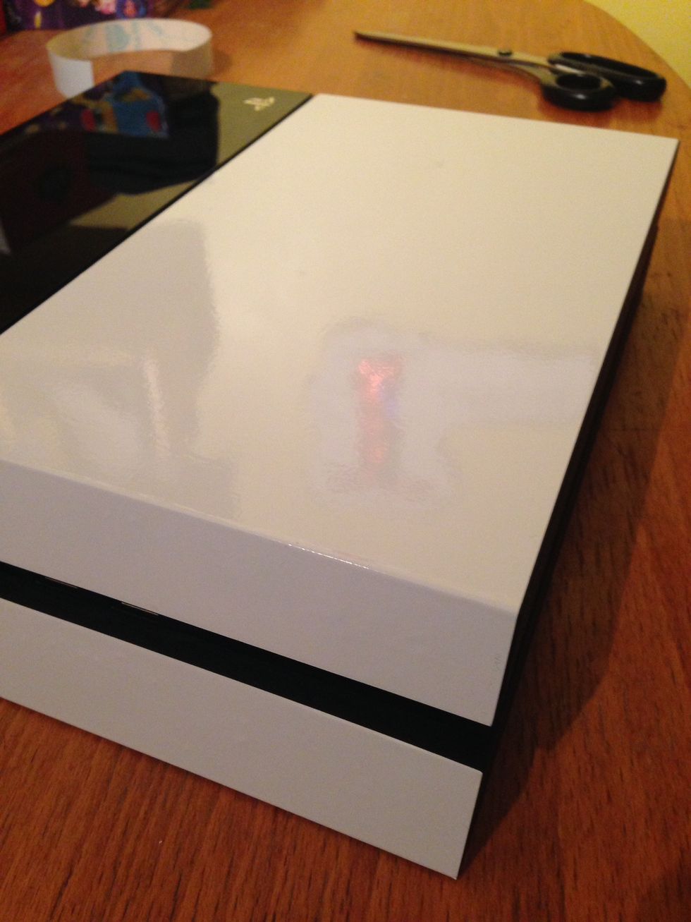Your PS4 should look at this. Next you need to pull the vinyl tight and smooth over the face of your PS4.