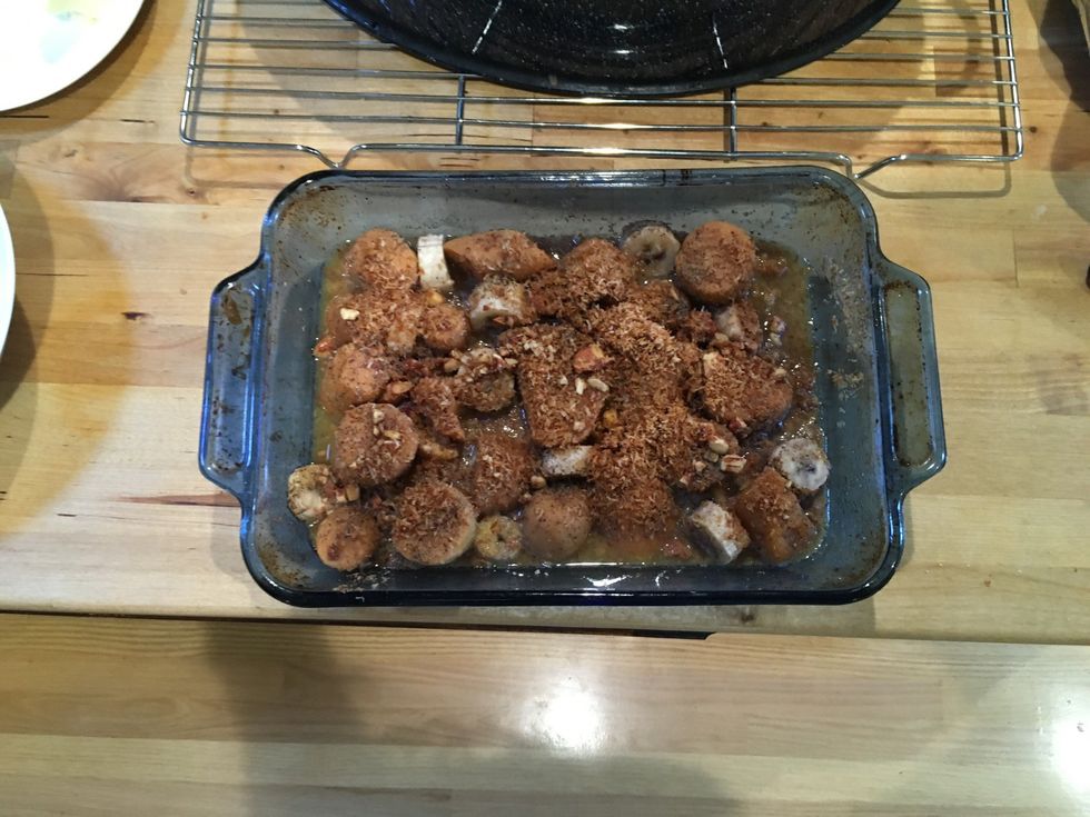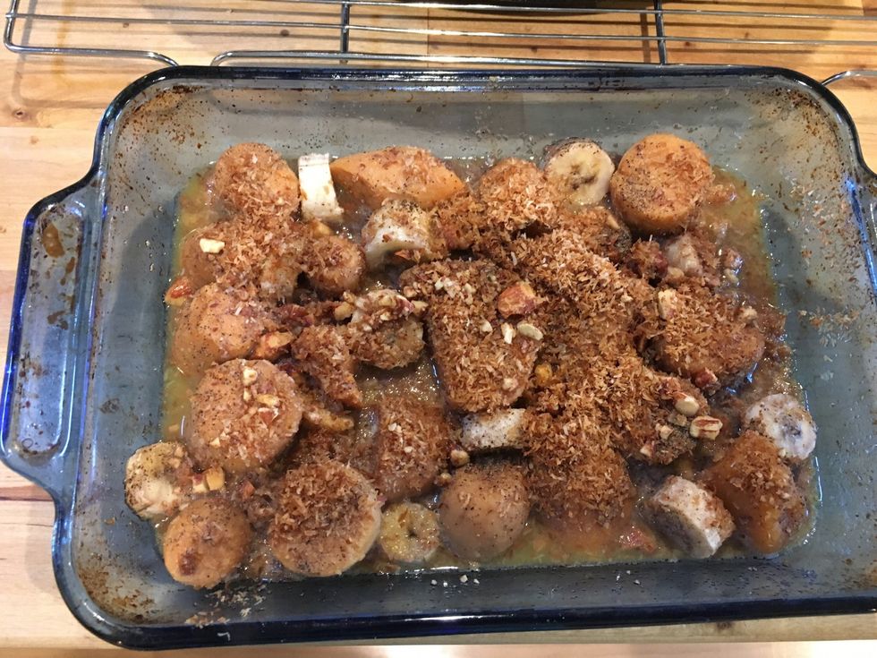 Sprinkle your salt and pepper. Now slowly pour orange juice over the yam and banana.