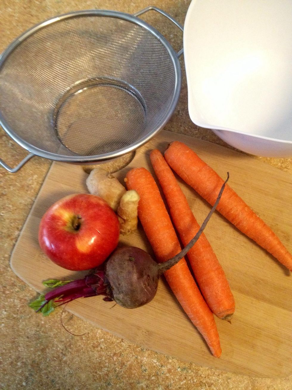 The finished product! Beet, carrot, apple and ginger juice. For some added deliciousness add fresh squeezed lemon to your juice :) enjoy!