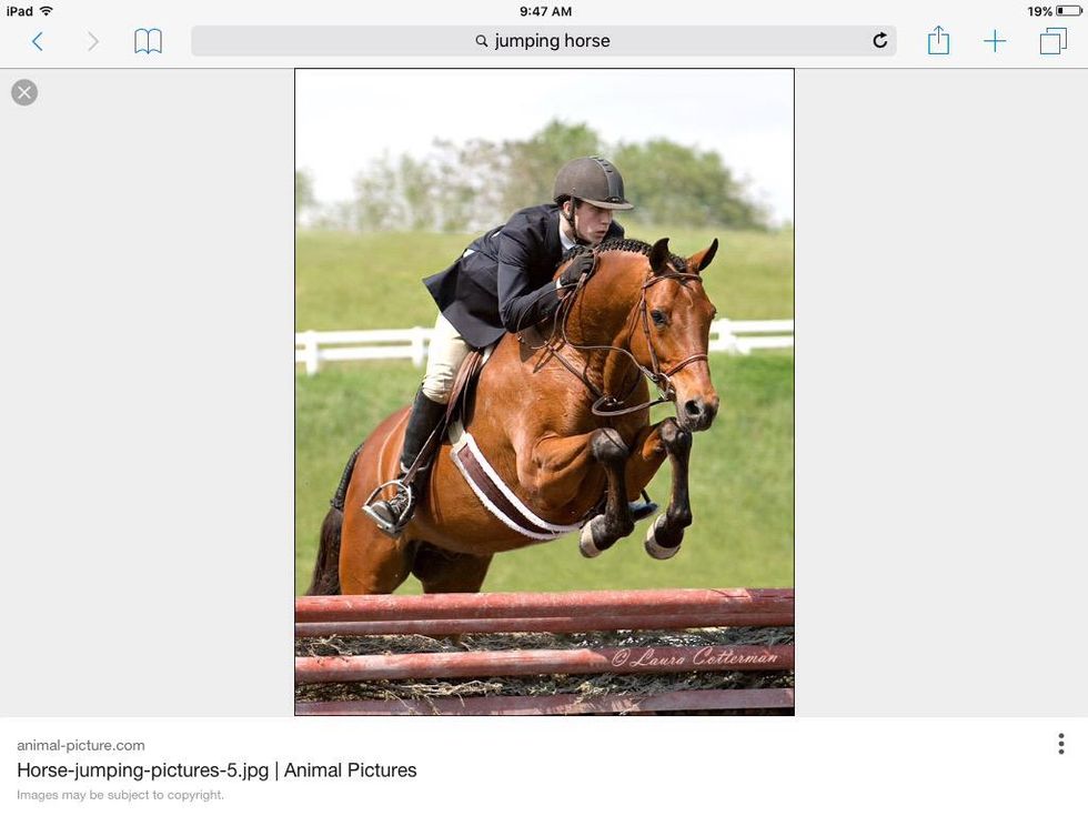 Your approach to the jump is very important. 1 stride before the jump, get in to two point position. Two point is when you stand in the stirrups and lean forward