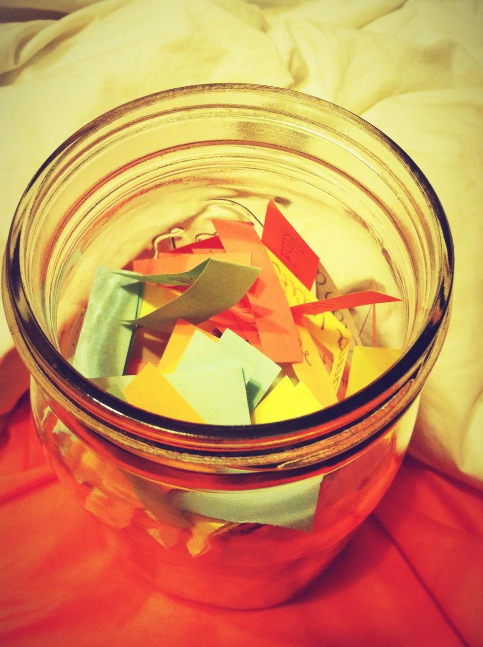 I have chosen to use my jar as my New Year's resolutions and also as a bucket list for my life. That means I'm going to go through my goals every year on December 31st.