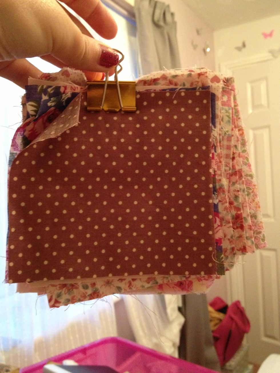 Stack all the squares and clip together, easy to see what you have and choose the square you want.