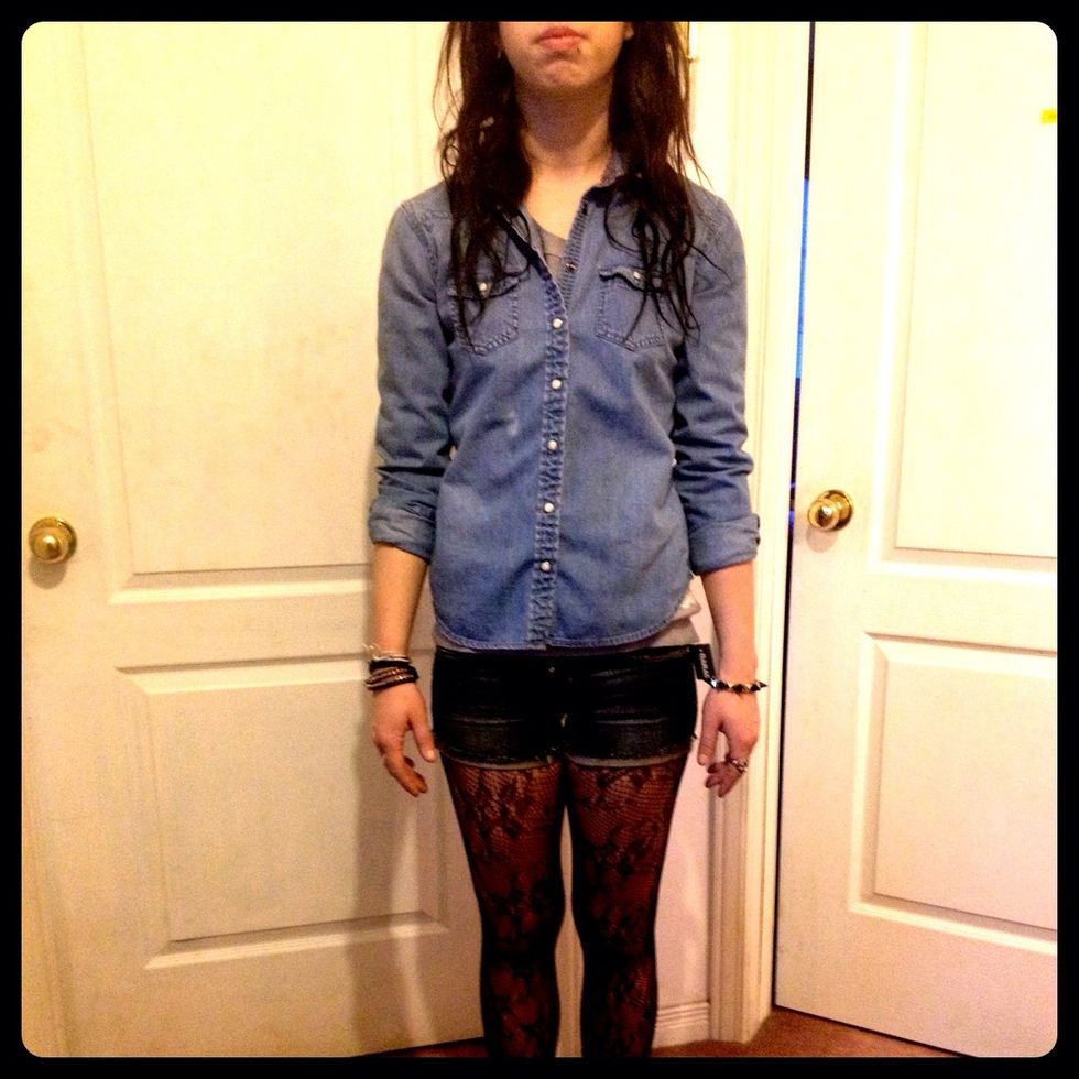 1) casual jean jacket 2) wavey hair 3) jean shorts of any colour 4) red nails / lipstick 5) plain black sneakers 6) accessories (bracelets, necklaces, earings, hair)