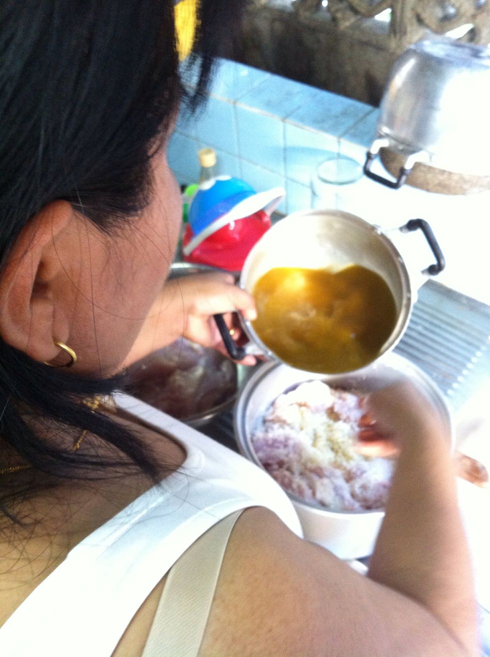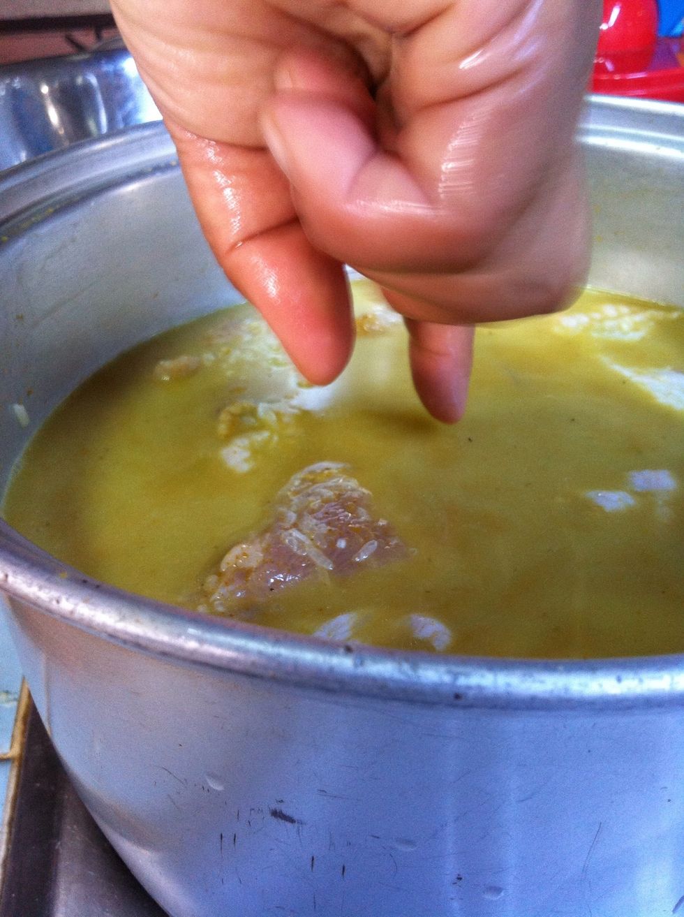 Put is equipment chicken and coconut milk 1 cup and mixing.