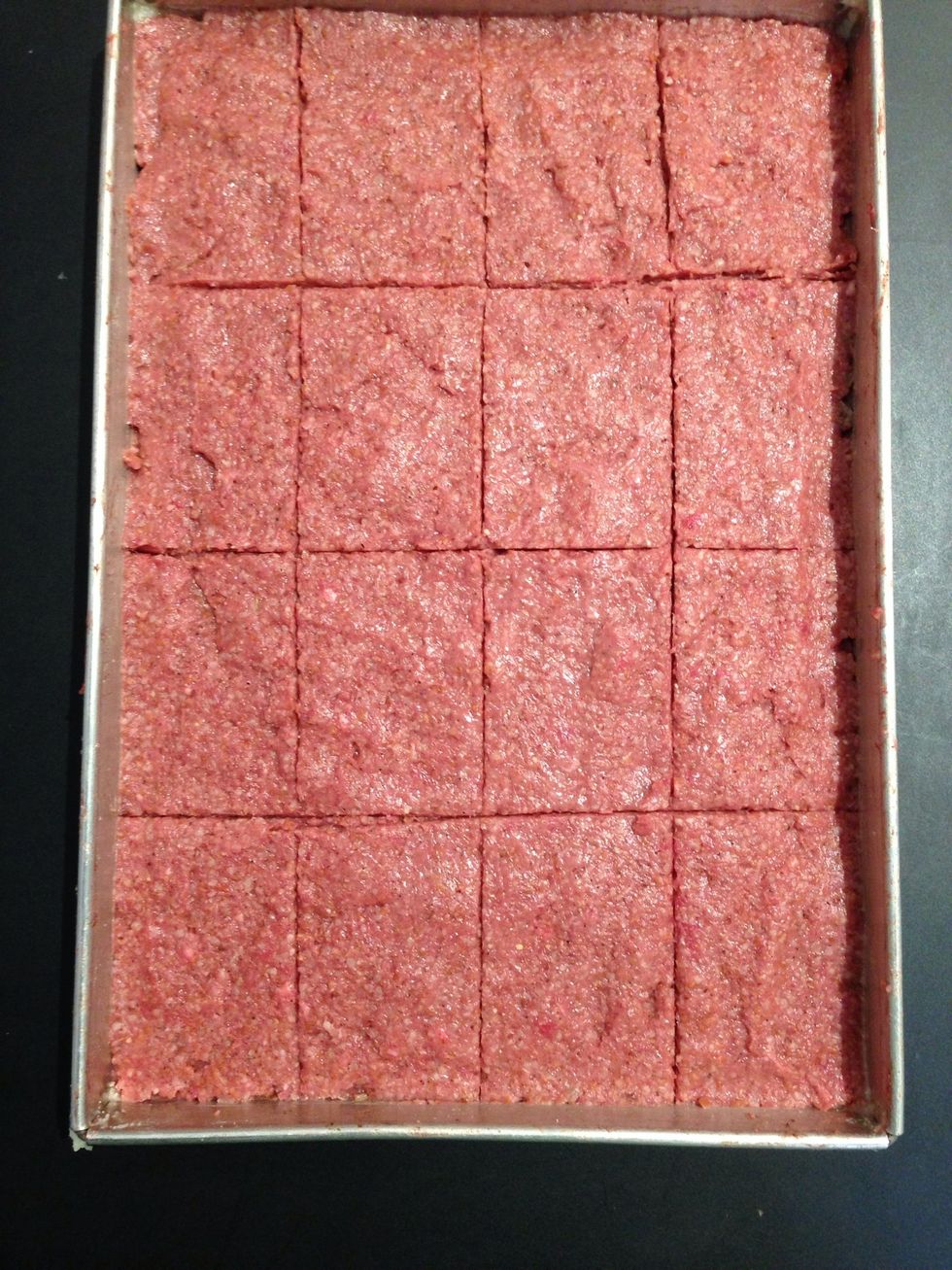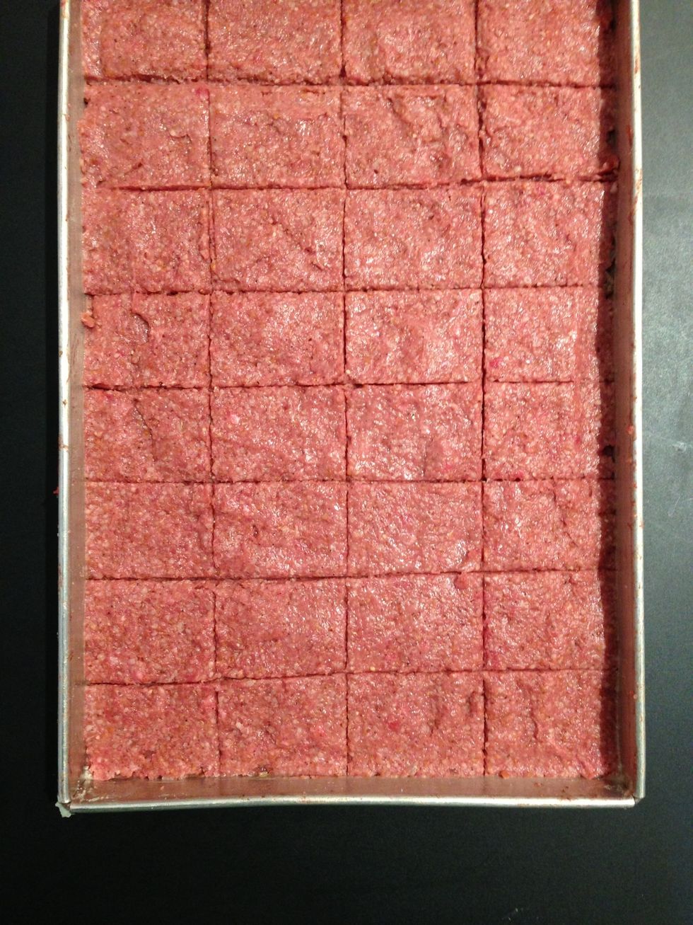 It has to be cut like you would cut cooked brownies. Here are series of fotos how I would do it