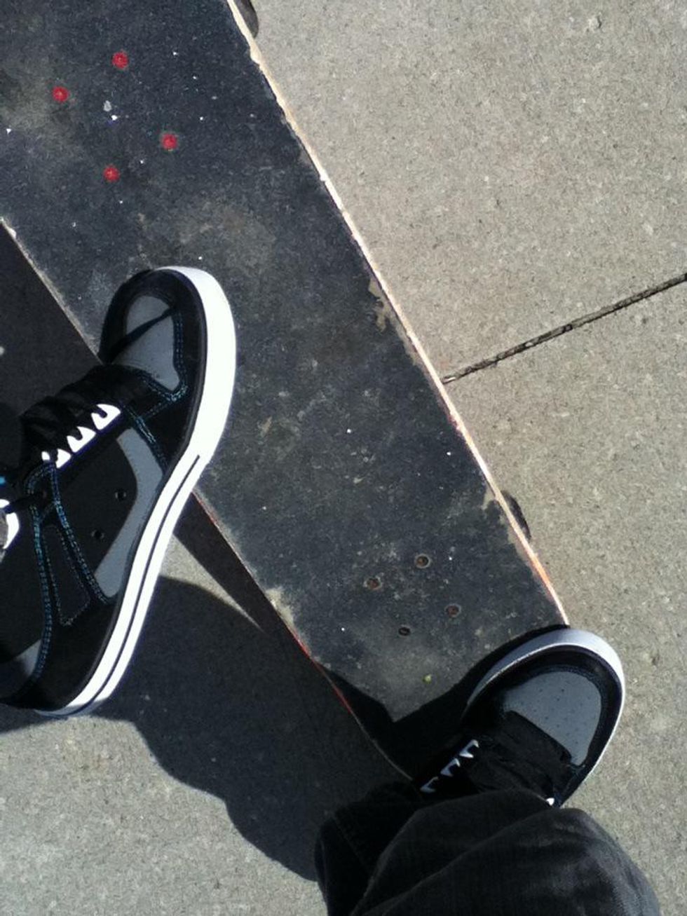 Stand with your front foot about 2 - 4 inches from the closest 2 screws, and your back foot on the rim of the board.