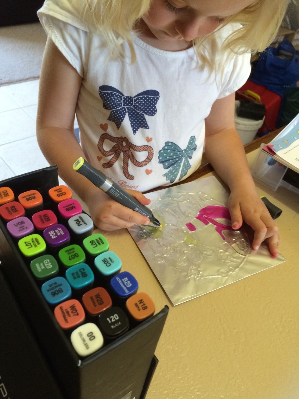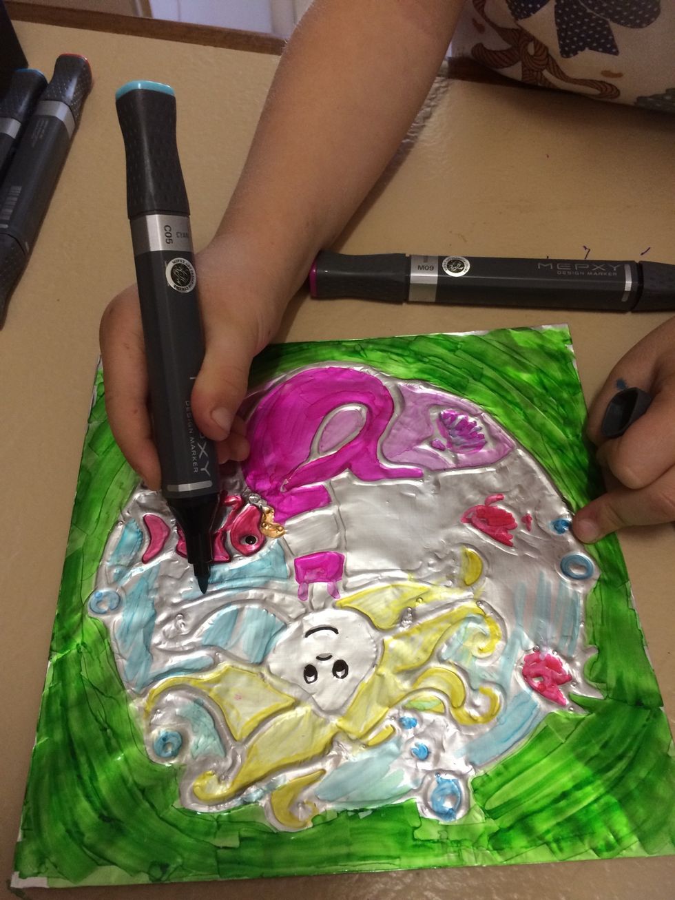 We used our fingers and a rubber on the end of a pencil to press down and stretch the foil