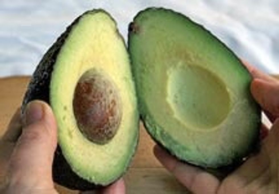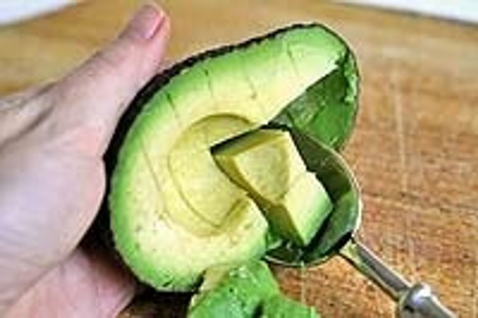 2. Scoop avocado with spoon into a bowl and also place pit in bowl.