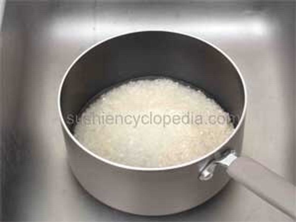 1. Place 1 1/2 cups rinsed long grain rice in pot with 3 cups of water