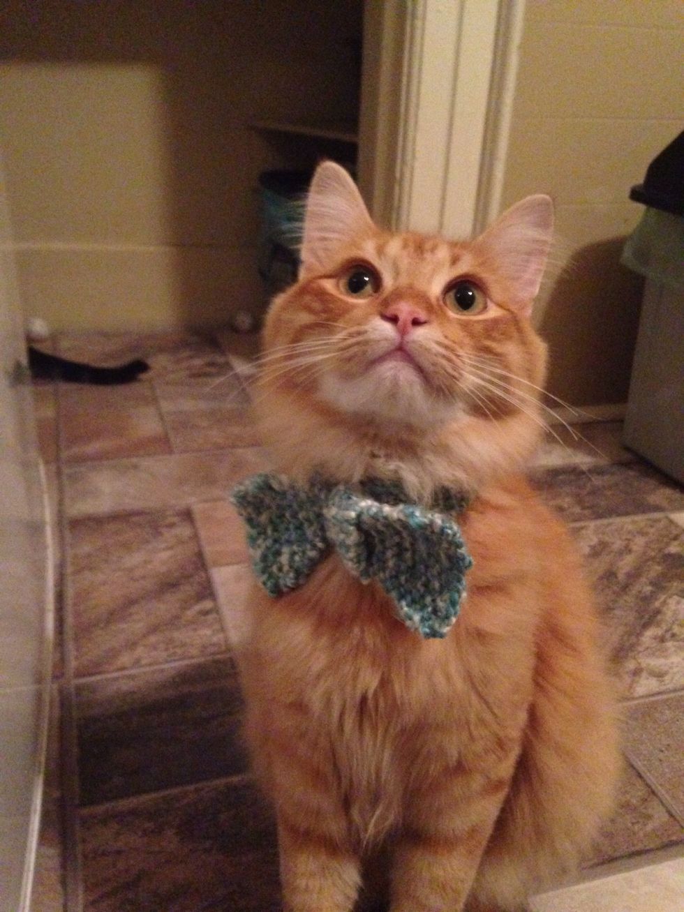 I knit a small loop and sewed It to make it look more like a bow tie