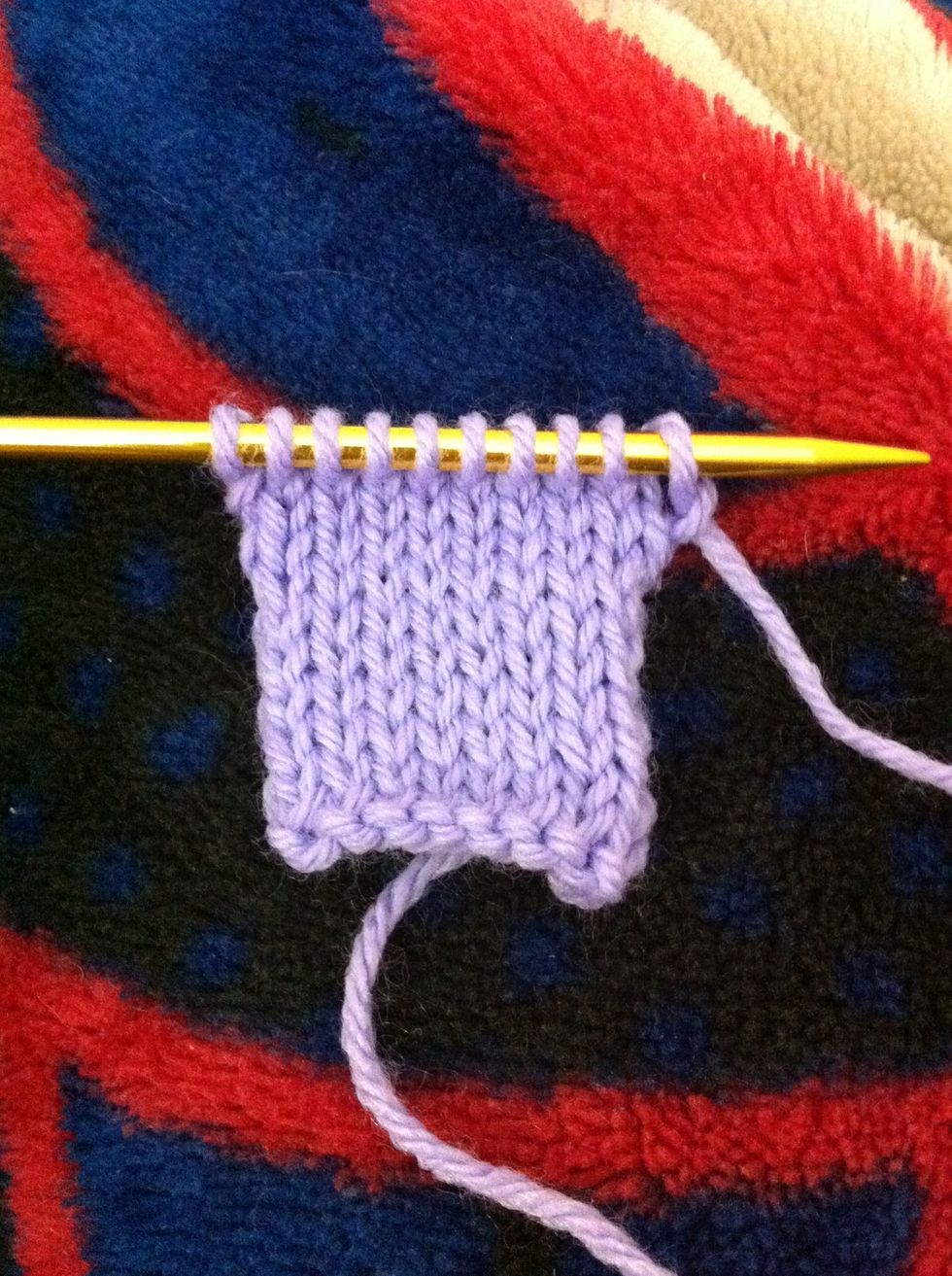 Continue repeating rows 1 and 2 until desired length. FYI: Stockinette stitch curls so you will want to have either a knit stitch border or even rib stitch. This is 10 cast on stitches 10 rows.