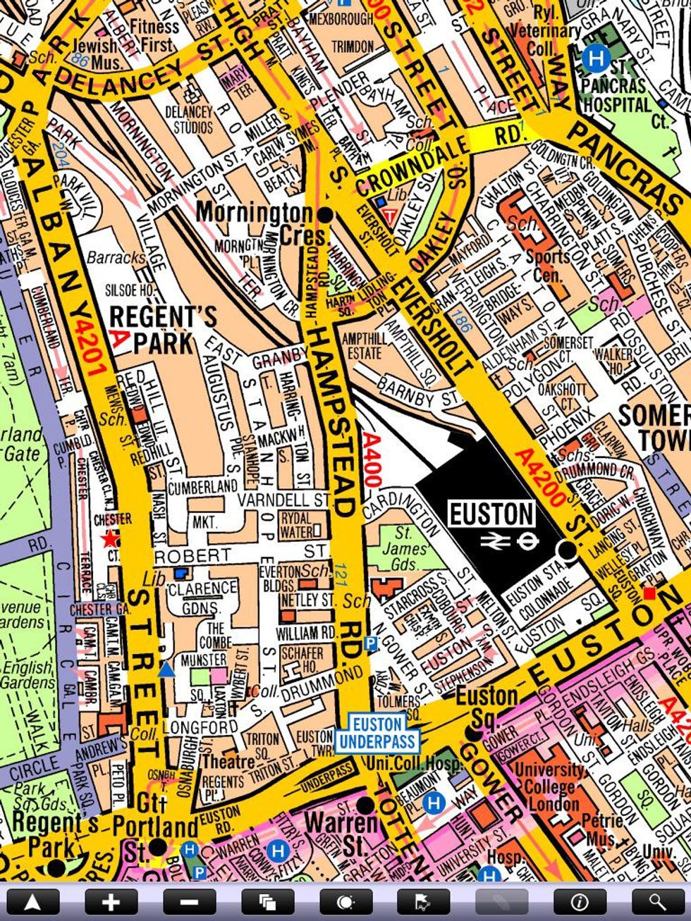 Lve on R Albert St, R Mornington St, Forced L Park Village East, L Granby Terr, R Hampstead Rd, L Cardington St, F Melton St, R down Ramp SDOL