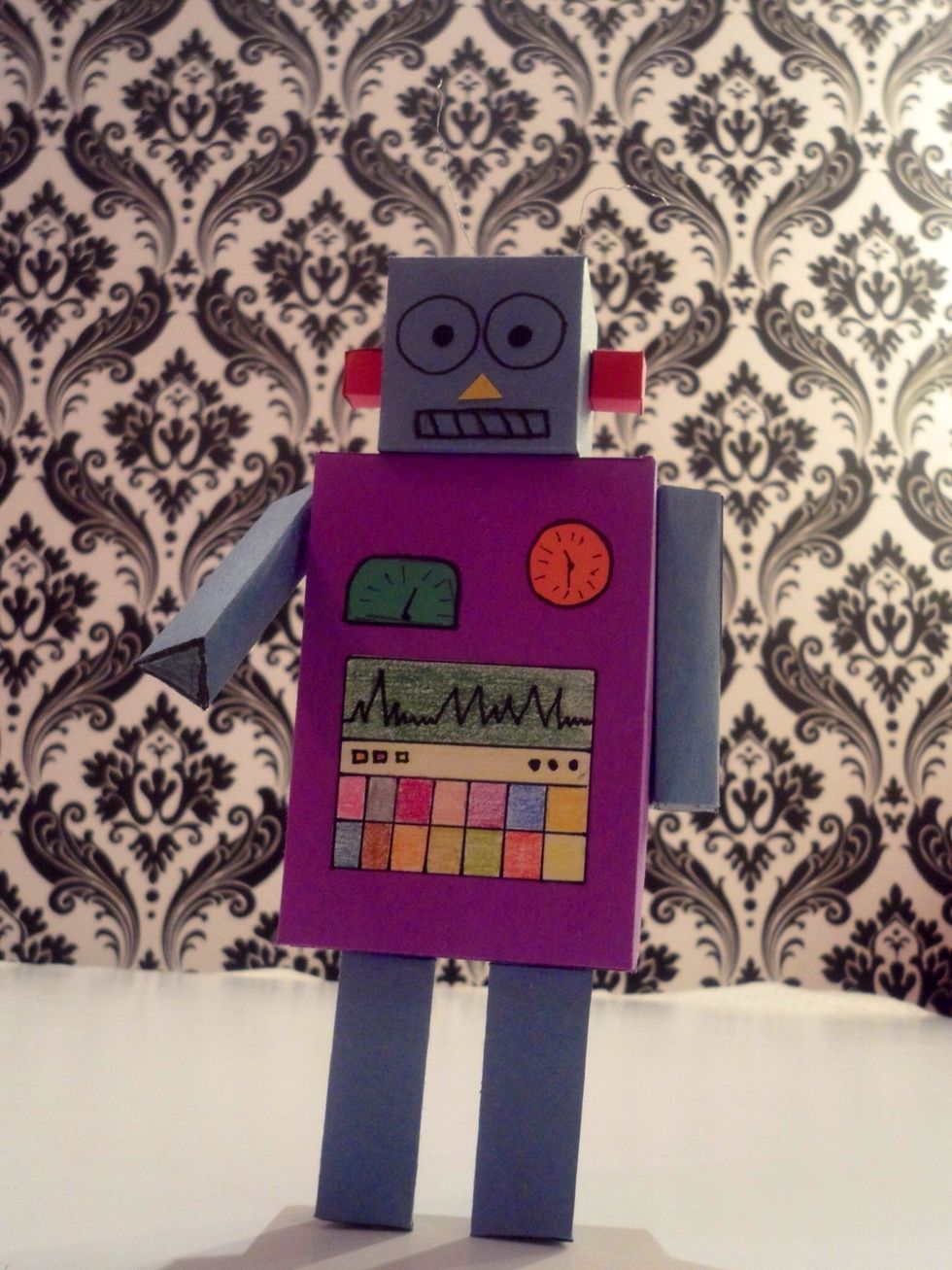 نلصق الاجزاء مع بعض باستخدام الصمغ لنكون شكل الرجل الالي