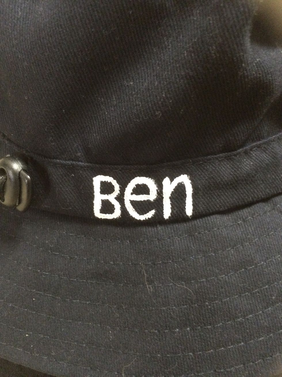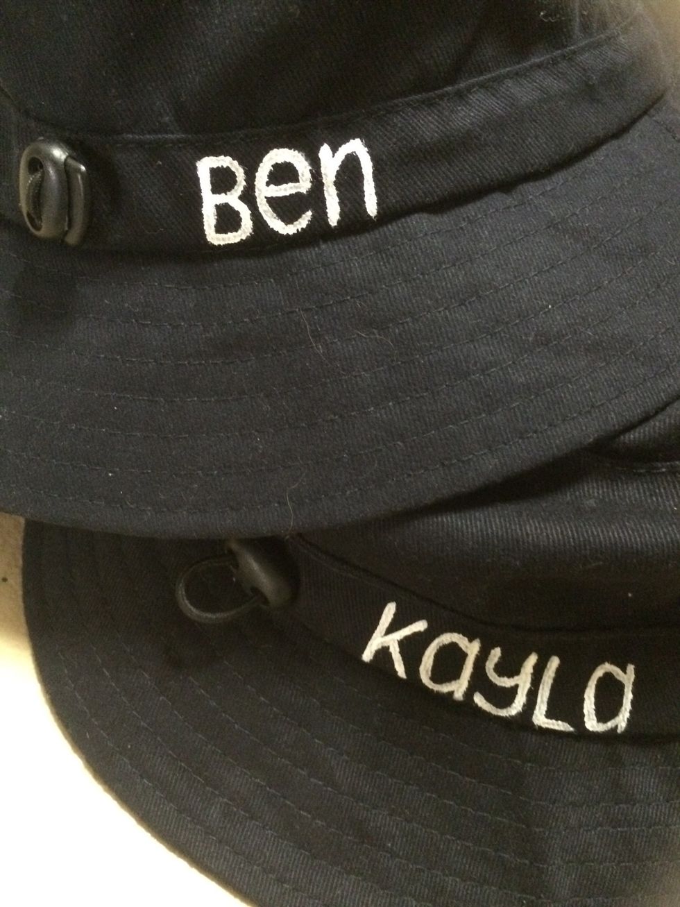 Very slowly and carefully I painted the letters onto the hats using quite a small bush.