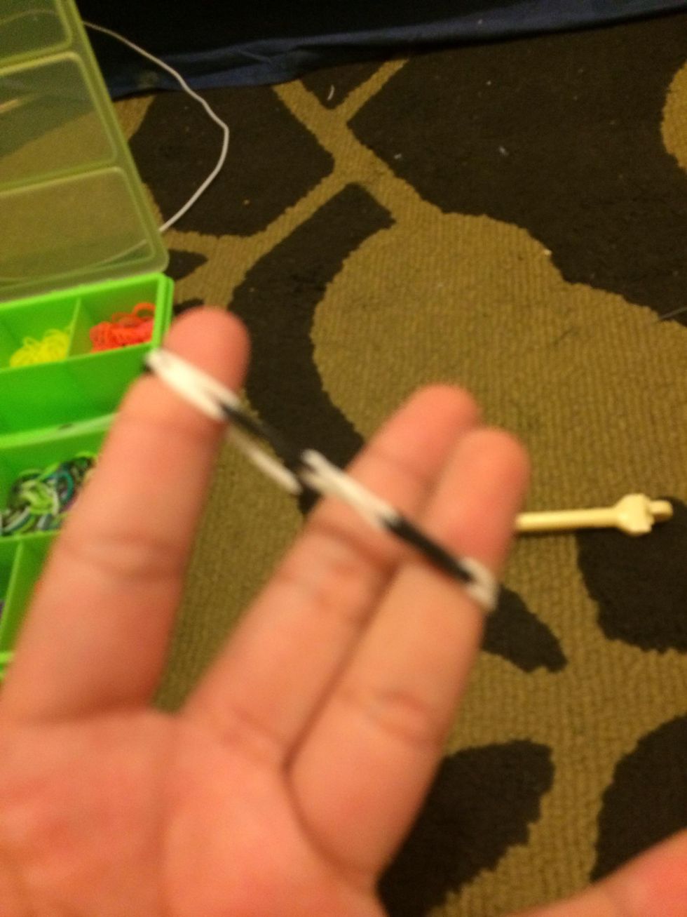 When the bracelet is at a good length, transfer the bands on one finger/pencil