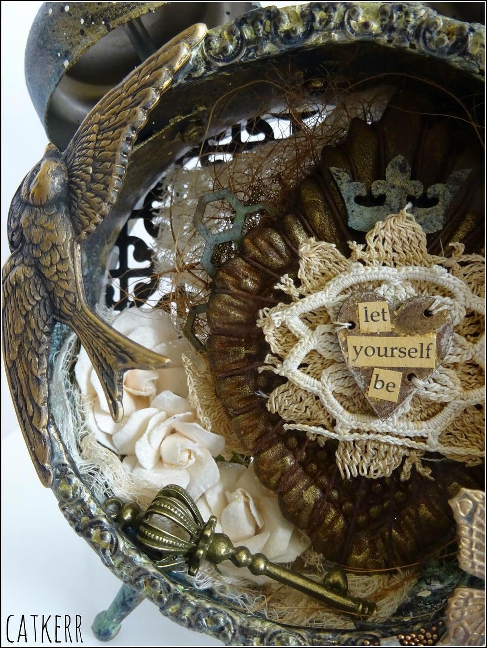 First I used the Ten Second Verday Patina Paint on the heart. I cant even explain how yummy this patina is. Then I added Metallic Lustre to the top of the heart to accentuate the raised area