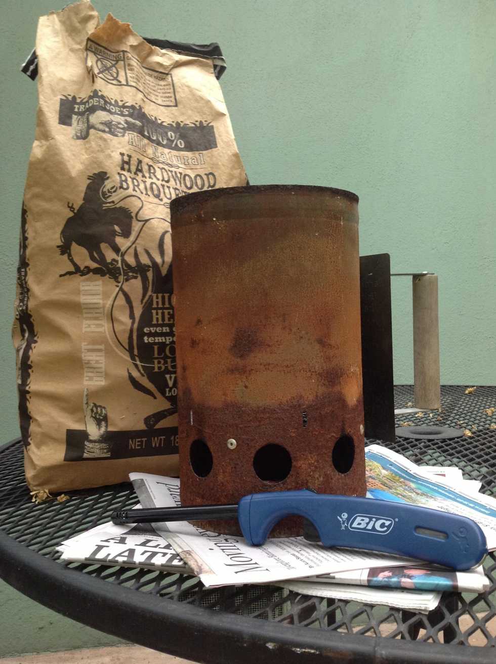 When most of the charcoal is hot (about 15 minutes), flames will rise above the chimney.