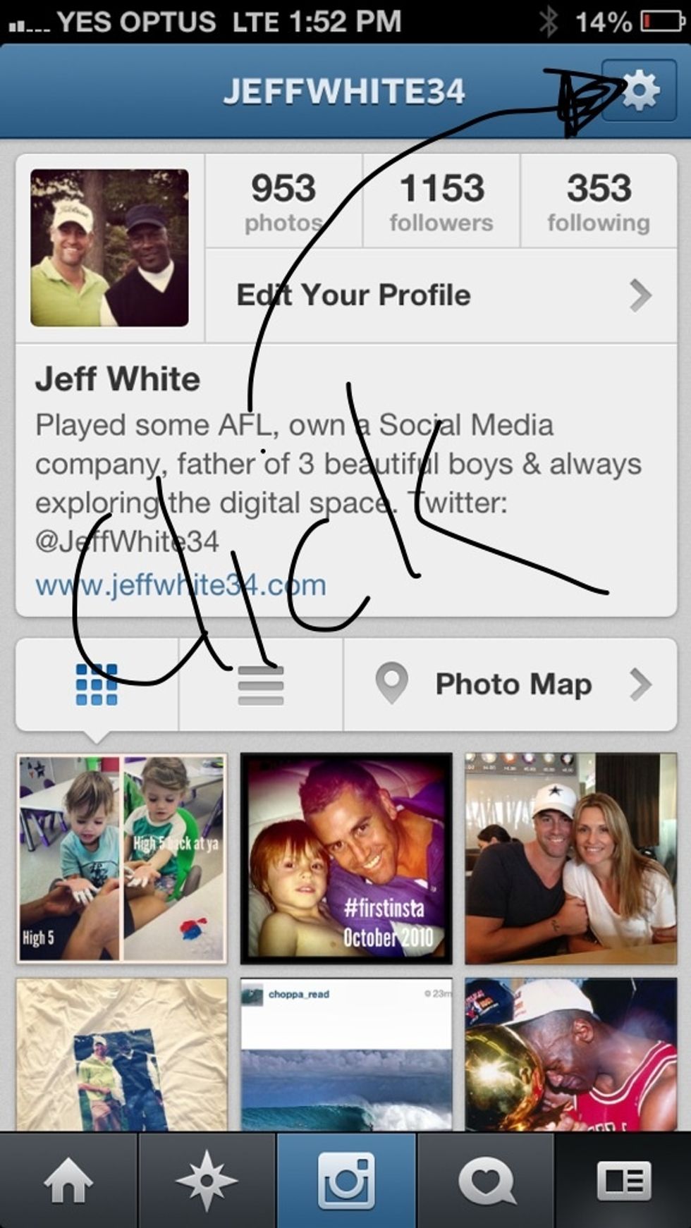 Click on the top button 'share photos to' your personal name should then appear. Once you click, the link through the Facebook app will begin.