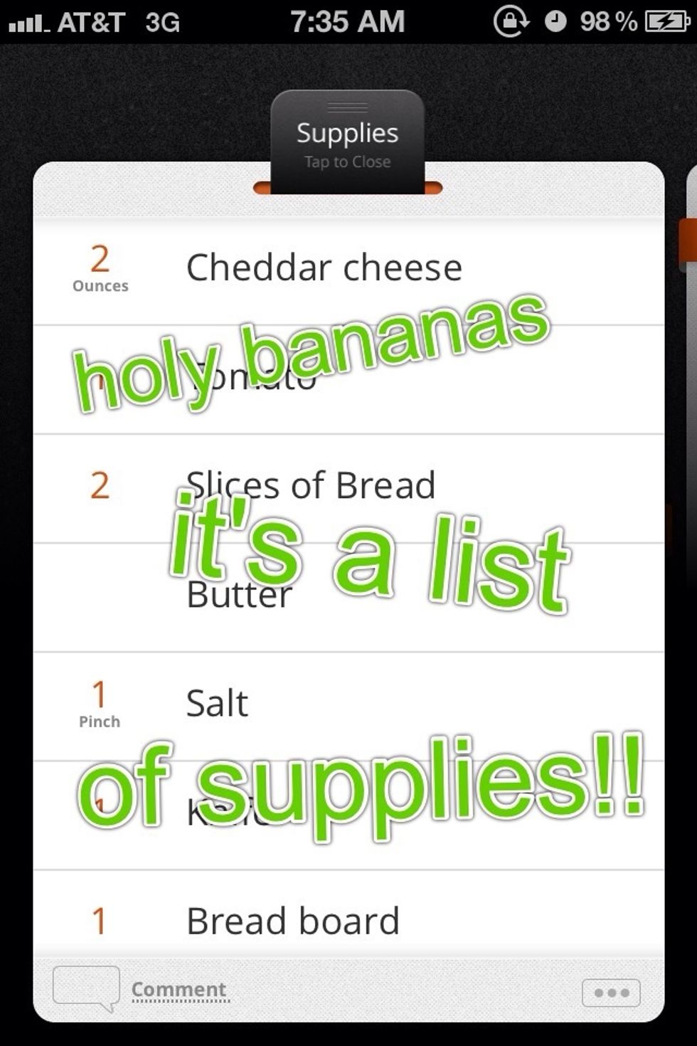 Now what do you do if your in the middle of a guide and you want to see the supples list again? Simple! Pull that rectangle up and behold the magic!