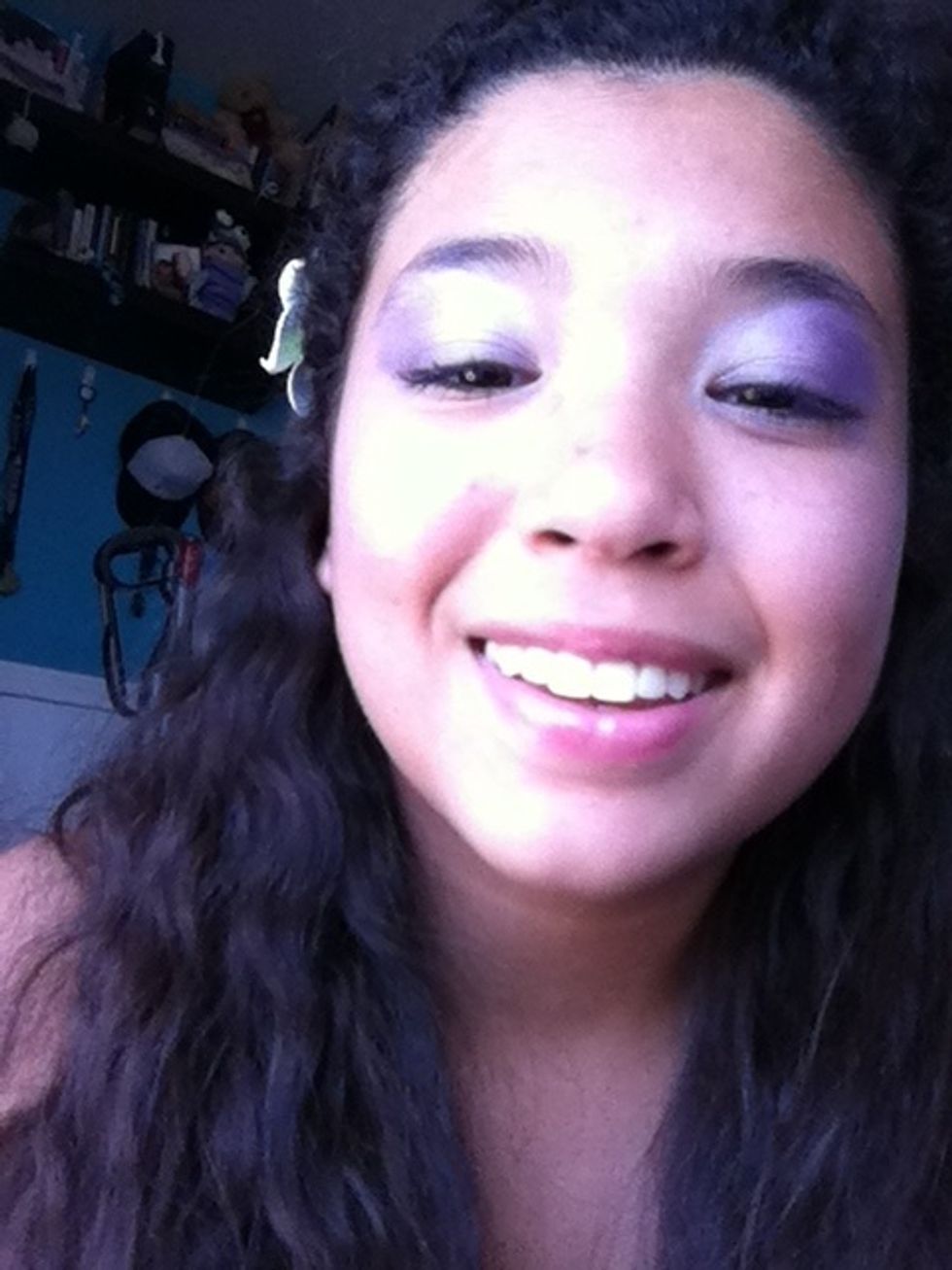 Next put a slightly darker purple under the brow line (the brow line is under your eyebrow)