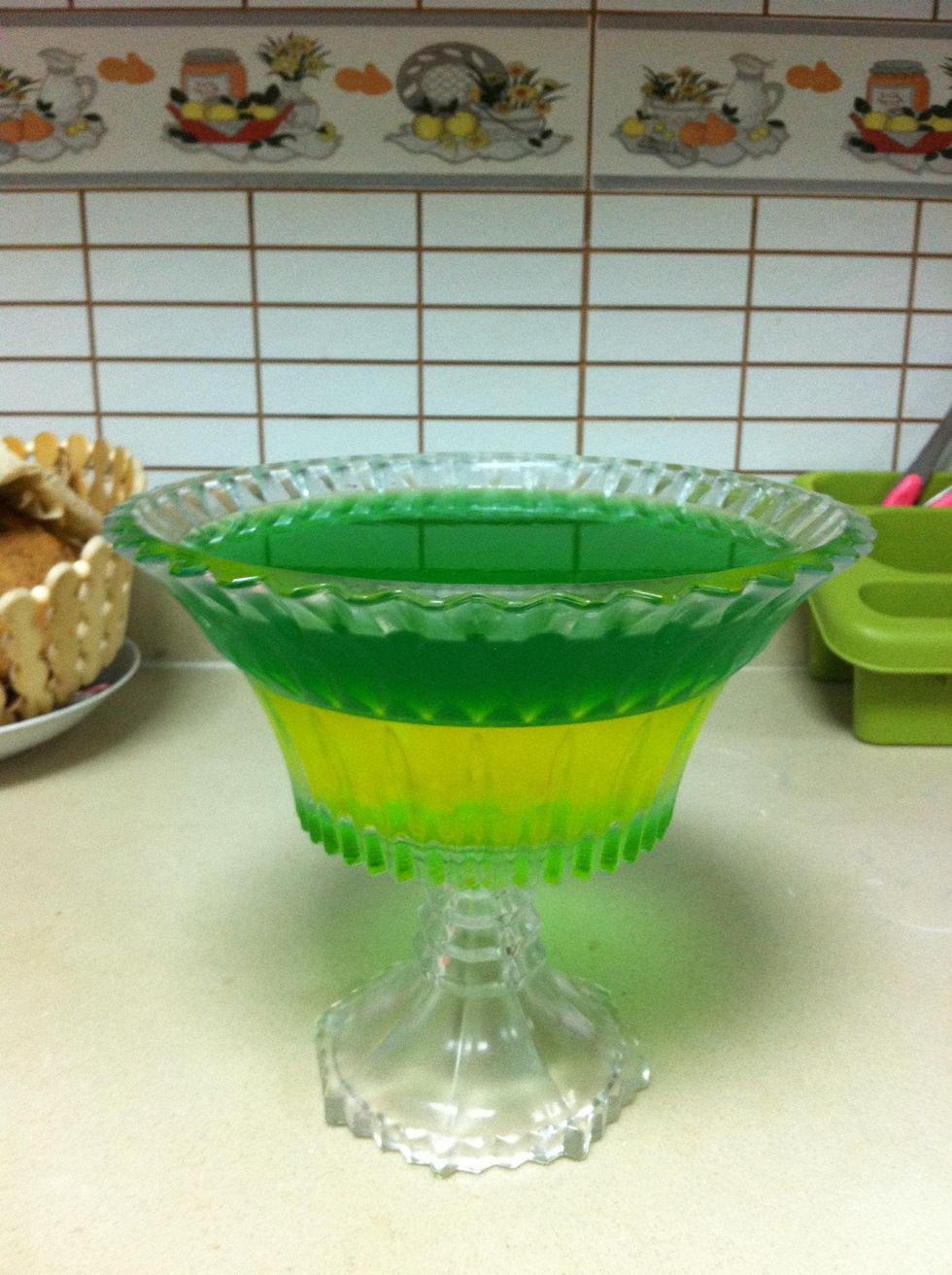 Repeat step 2-3-4 for the lemon taste. ( add 1 cup of hot and 1 cup of cold water to the lemone jelatine)