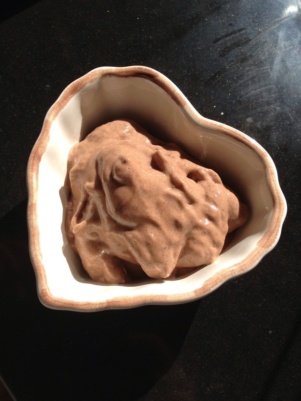 Then you're gonna put the banana into a bowl/a mixer. You want to mix it until it gets extremely smooth. (if your banana is too cold, you may have to heat it up in the microwave for a few seconds)