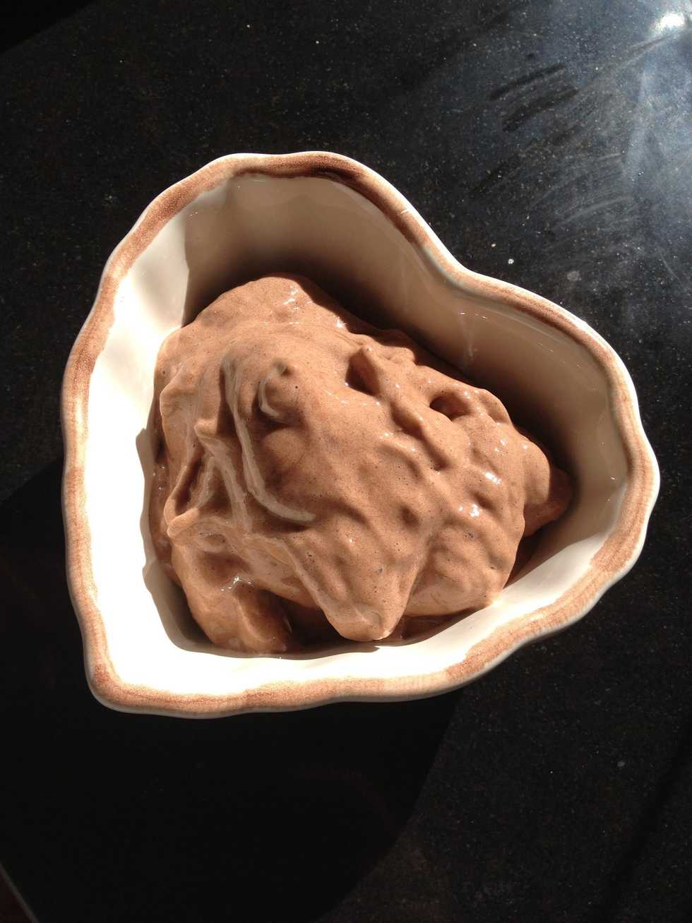 Pour it into a bowl and pop it into the freezer for a few hours more (at least two). You can eat it straight away but i like it when it has the same consistency as ice cream