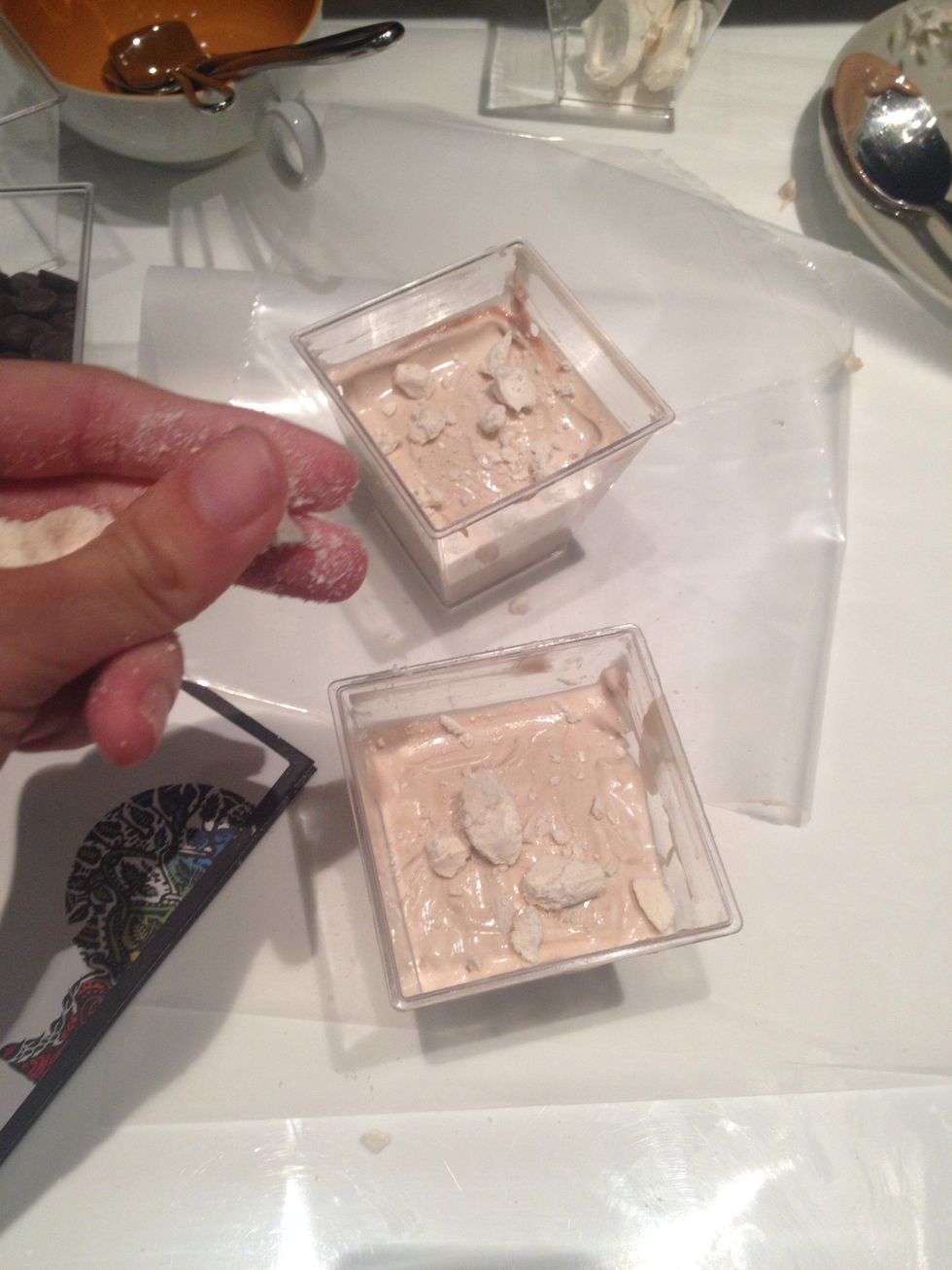 To decorate and enhance the flavor, i break some french meringues on to the top of the ice cream. Or you can use chocolate chip or anything you like.