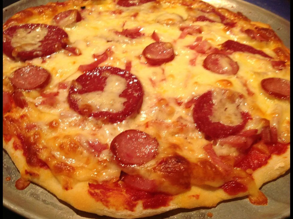 Roll out and add toppings put in the oven for about 10 mins at 180 degrees