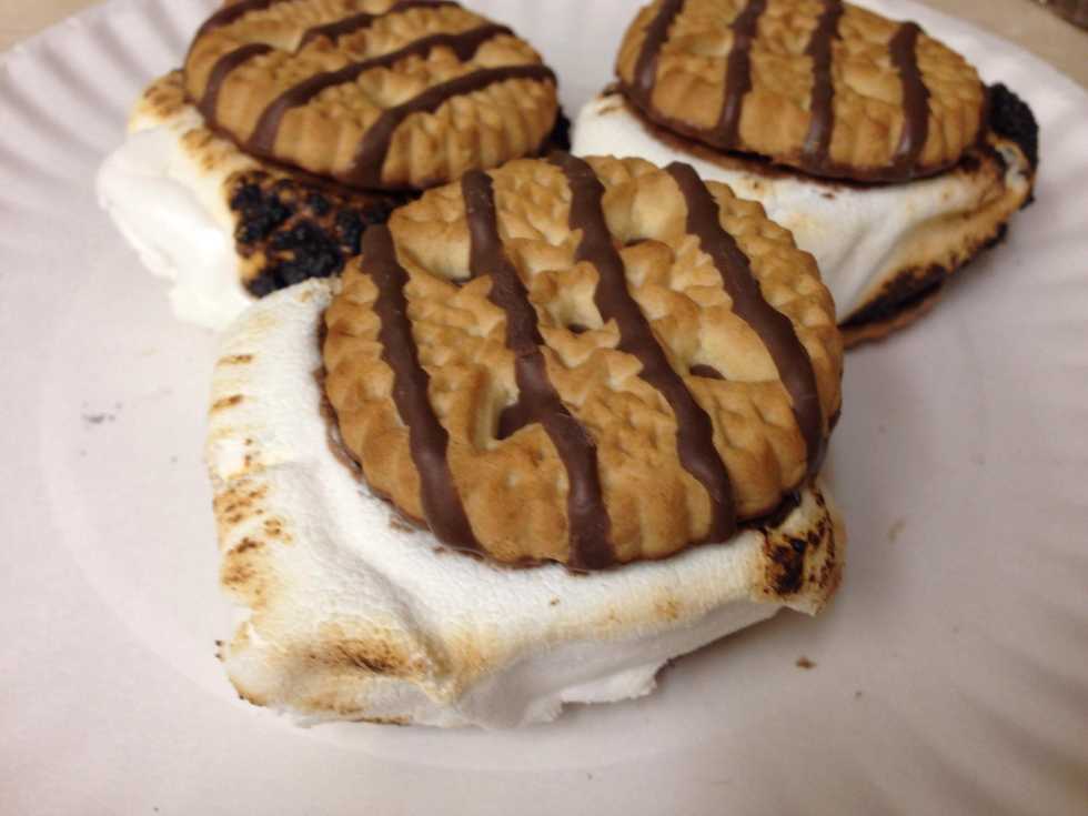 Gather your suppliesHAVE AN ADULT DO THIS PART! SOAKING YOUR SKEWERS IN WATER WILL KEEP THEM FROM BURNING OVER AN OPEN FIRE. ROAST YOUR MARSHMALLOWS TO YOUR LIKING.SQUEEZE YOUR MARSHMALLOW IN BETWEEN YOUR COOKIES AND ENJOY.